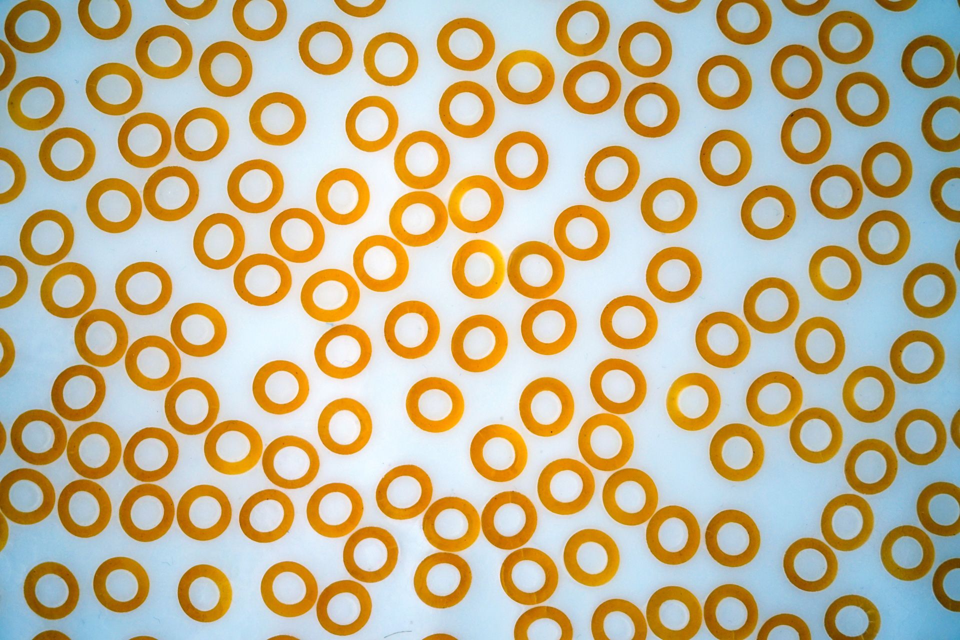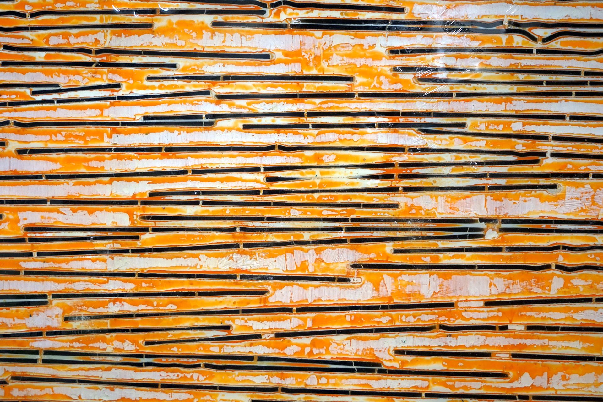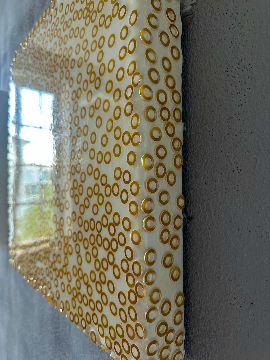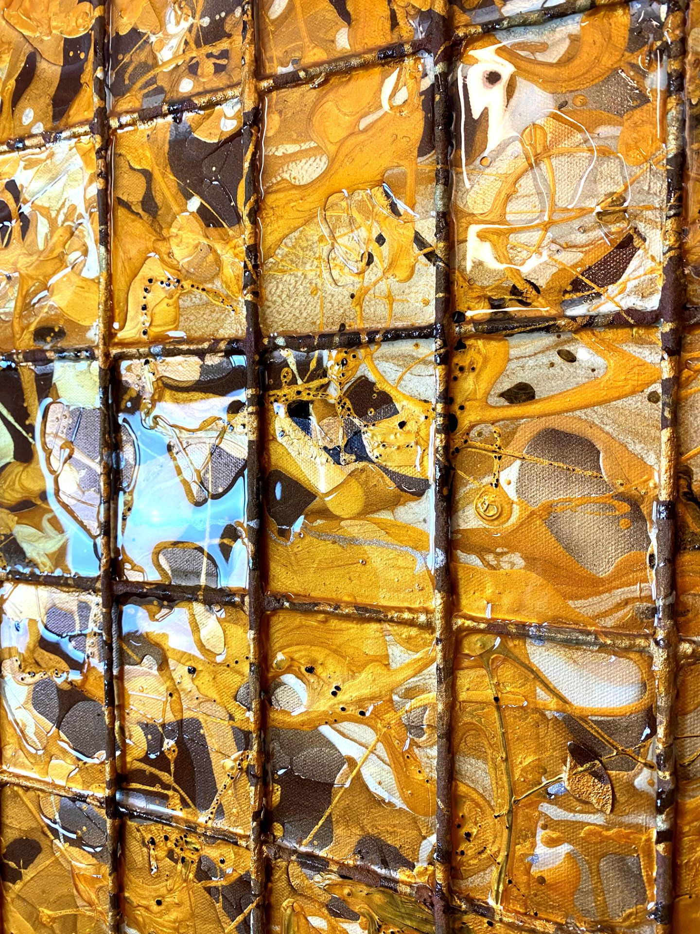 Zweifach angeordnet, im Goldenen Schnitt, geht der Farbverlauf über von rohölfarbenem Schwarz zum normalen, zum echten Gold…
