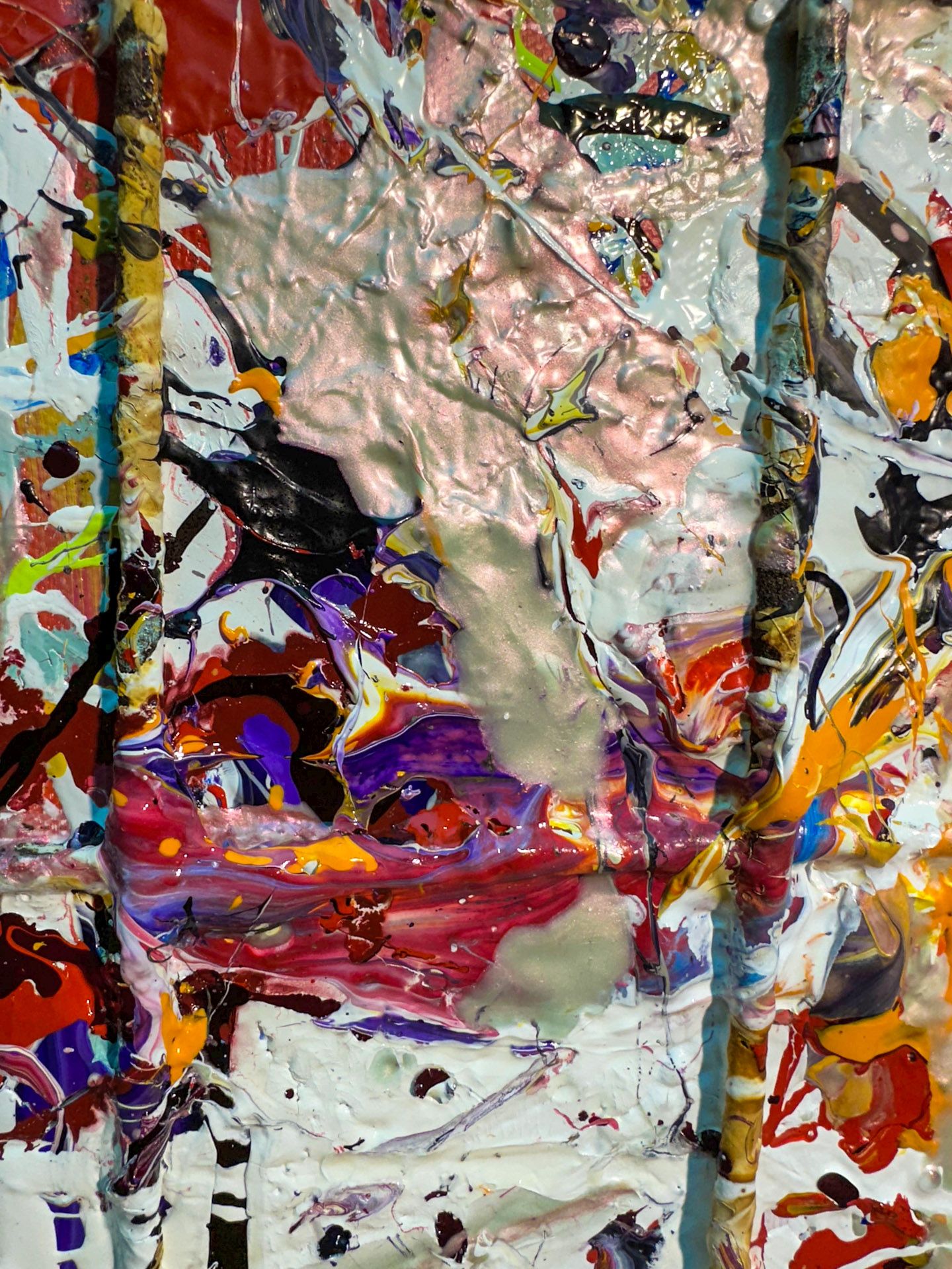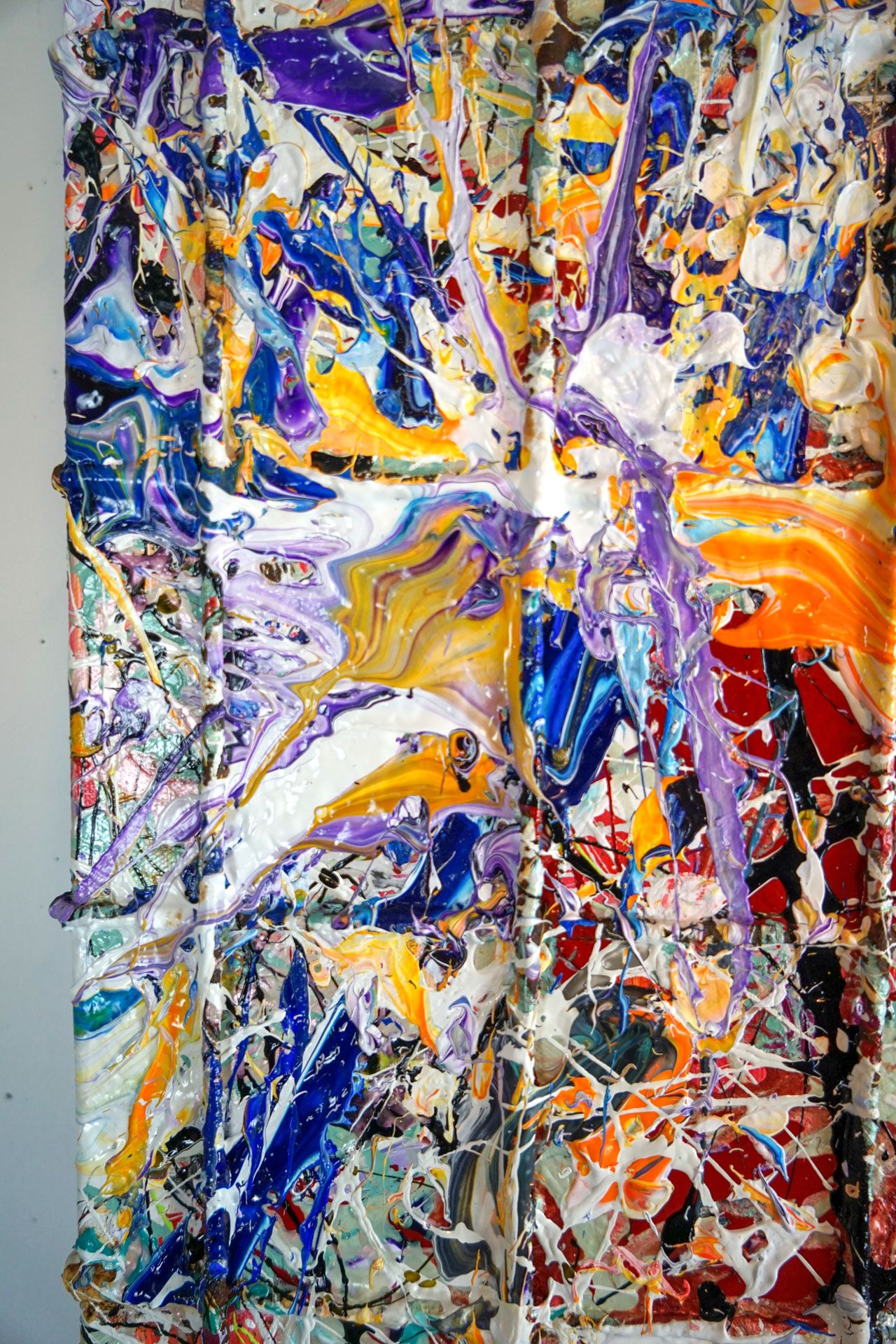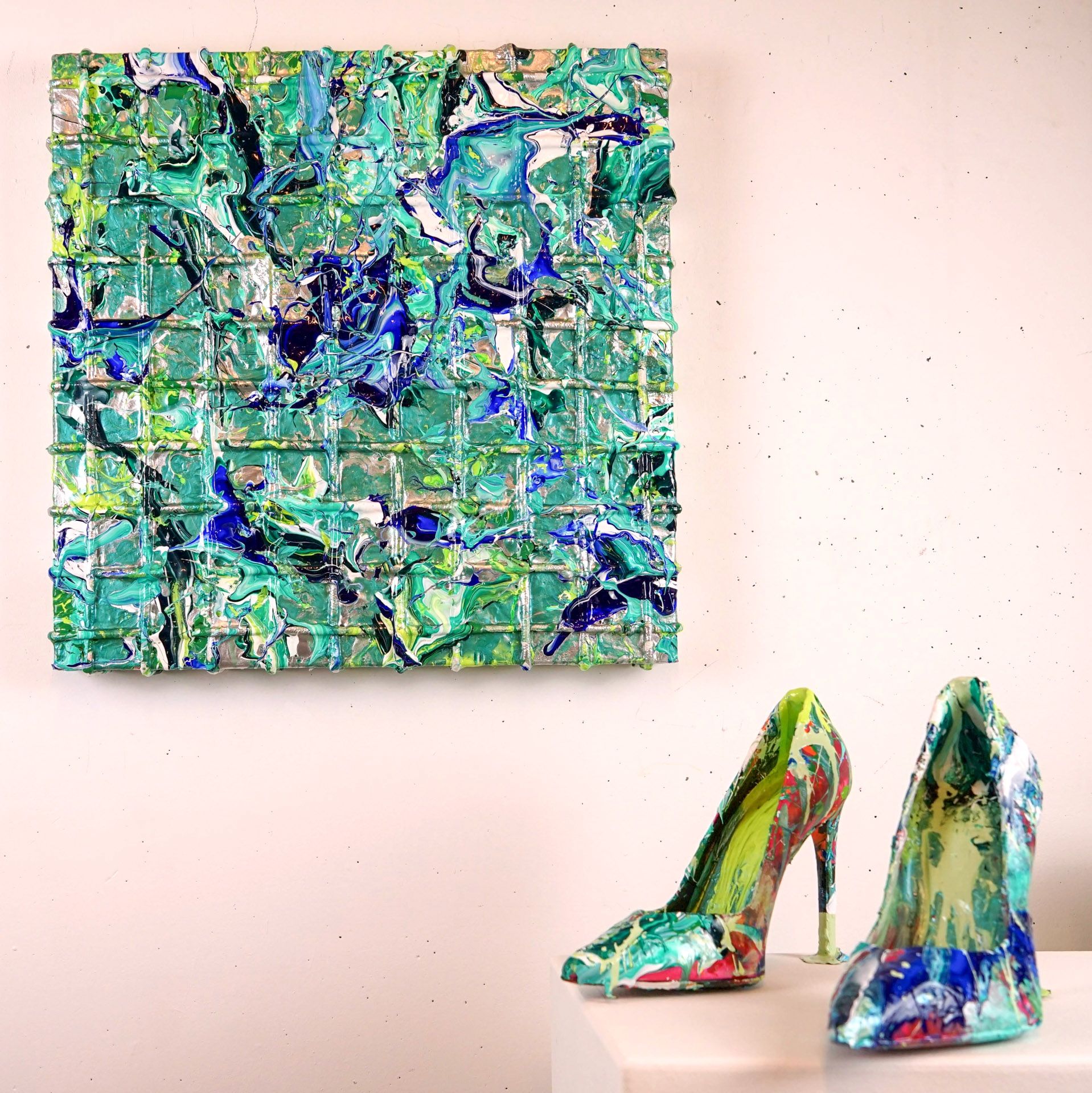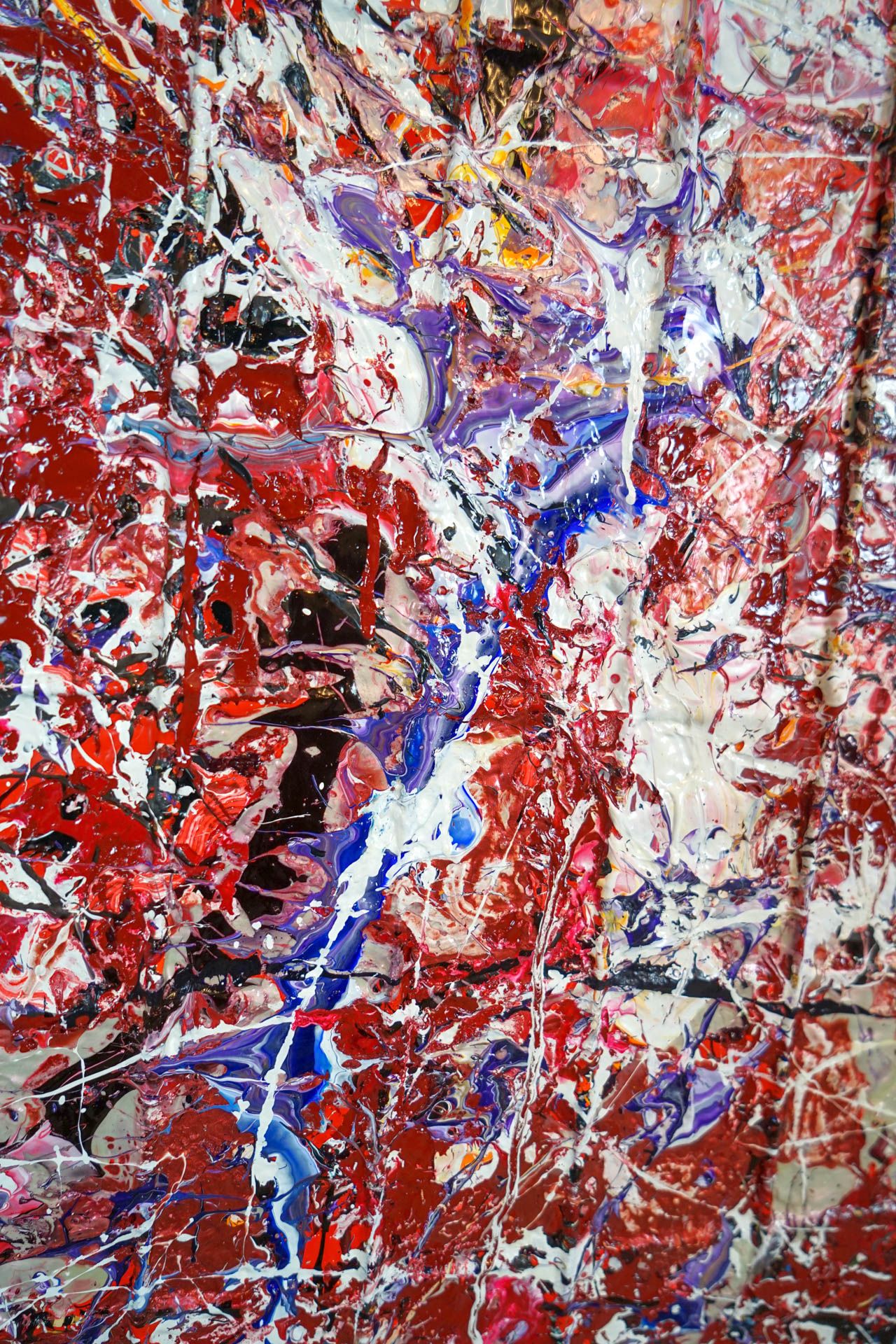 Der dabei erreichte Reichtum und Luxus, findet abschließend seinen Ausdruck im dekadenten Malprozess ausgedrückt zum einen durch überschwängliche Farbverwendung. Insbesondere aber auch das Malen, mit einem Paar Louboutin Highheels versinnbildlicht das Übermaß an erreichtem Wohlstand.