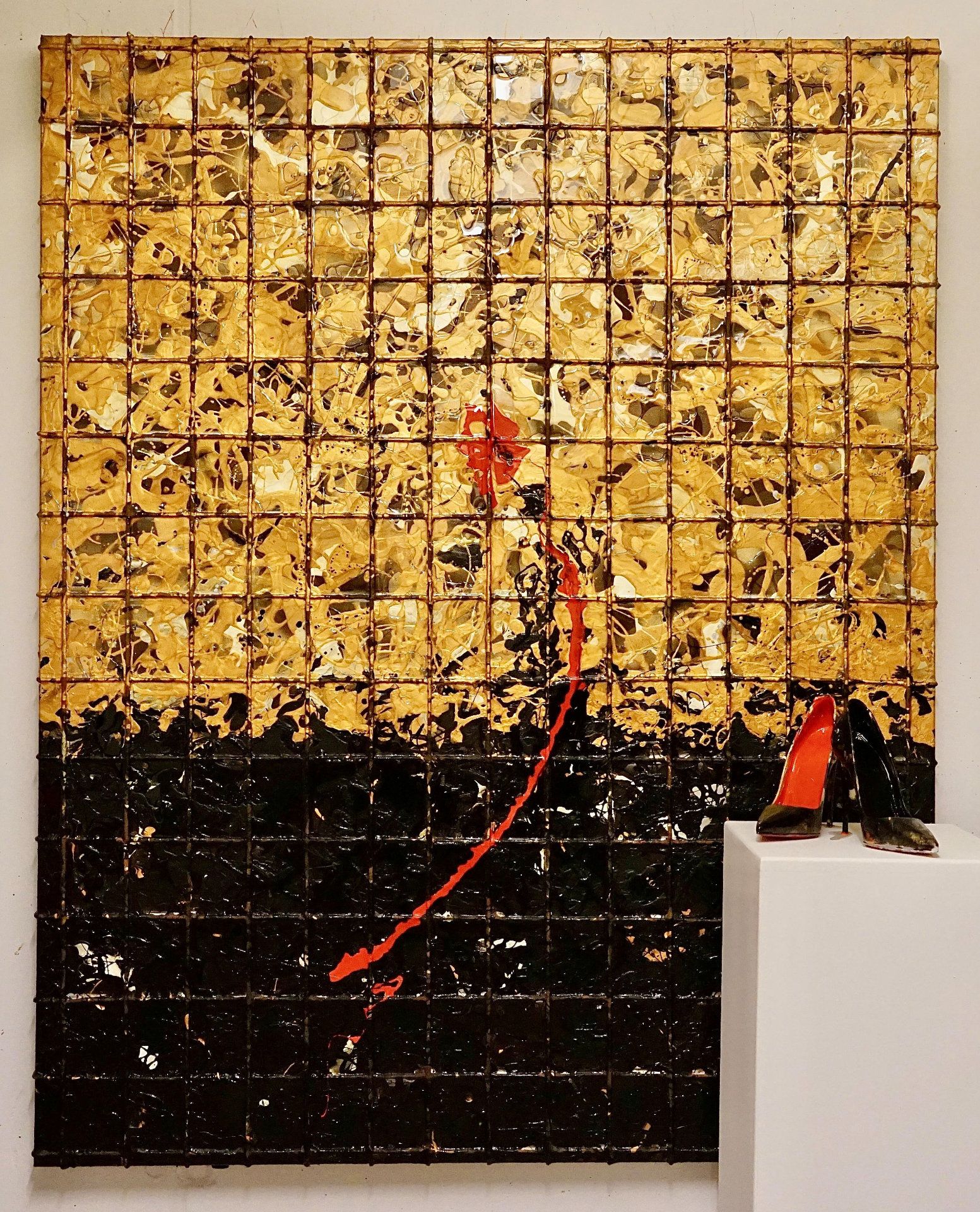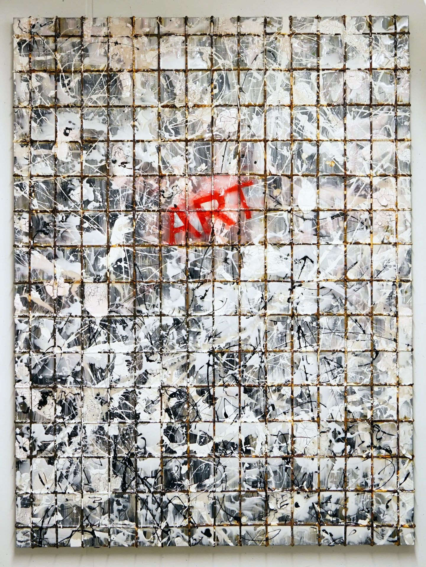 Replica welded mesh, grids of „welded bars“, intended for reinforcement, a reinforcement of floor slabs and walls, serve here – simulated by strained ropes – as reinforcement of canvases.
